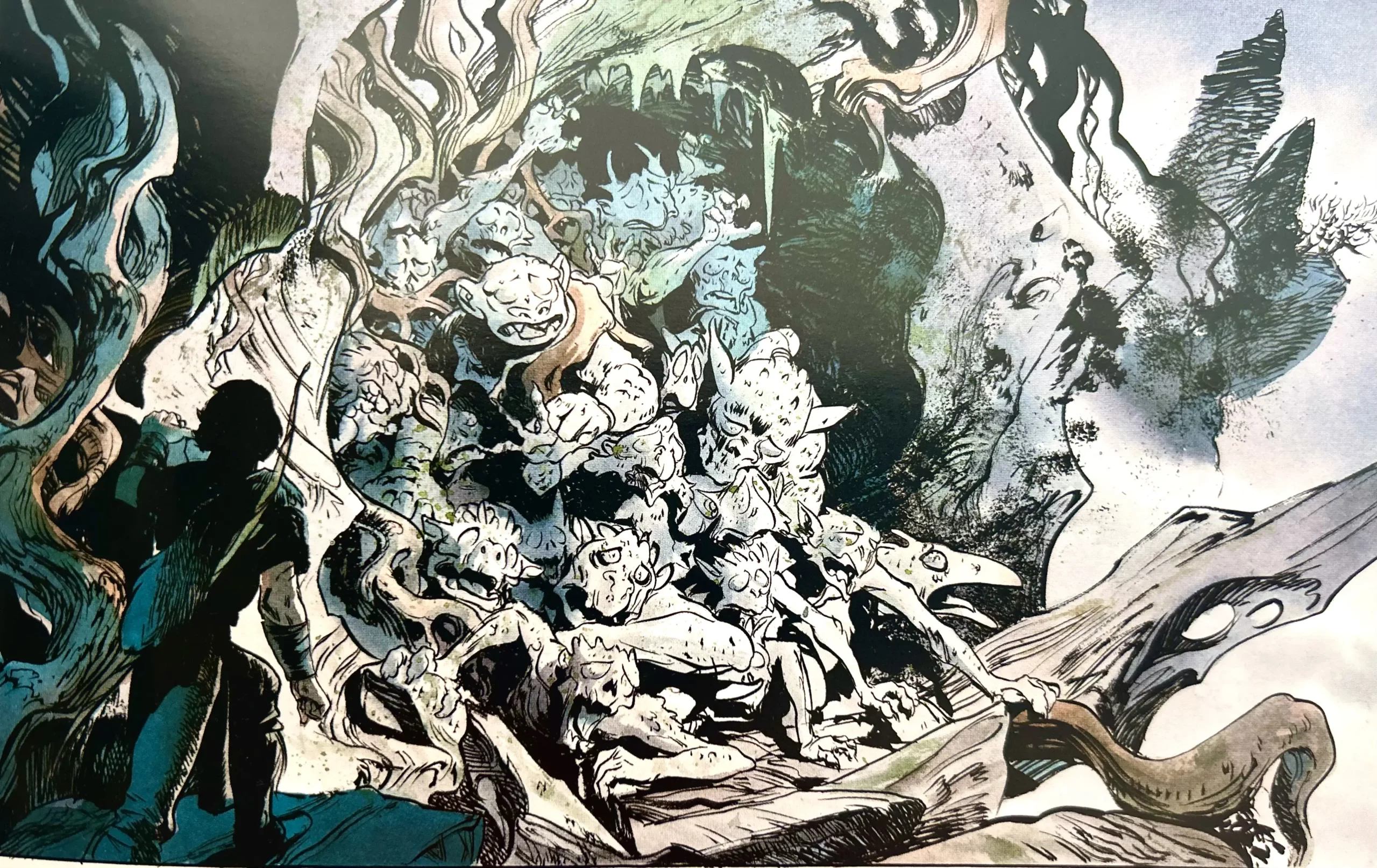 Le style d’Alex Alice repose sur des contrastes importants, avec des zones d’ombre profondes qui créent l’atmosphère. Le risque en impression est que ces zones très encrées ne se « bouchent », transformant les riches nuances en une masse noire uniforme.