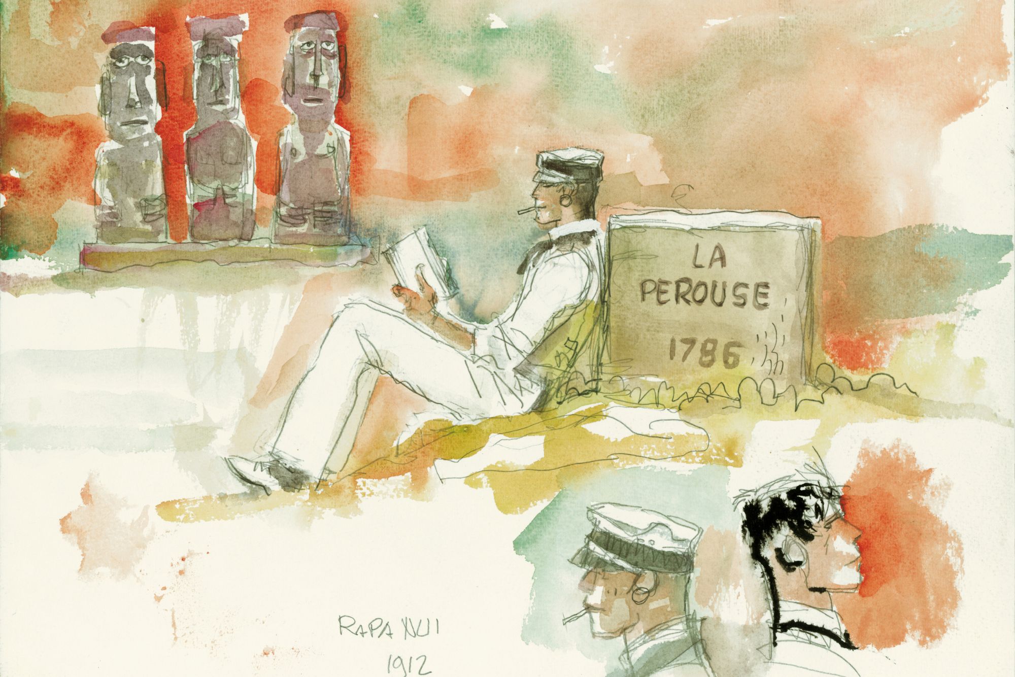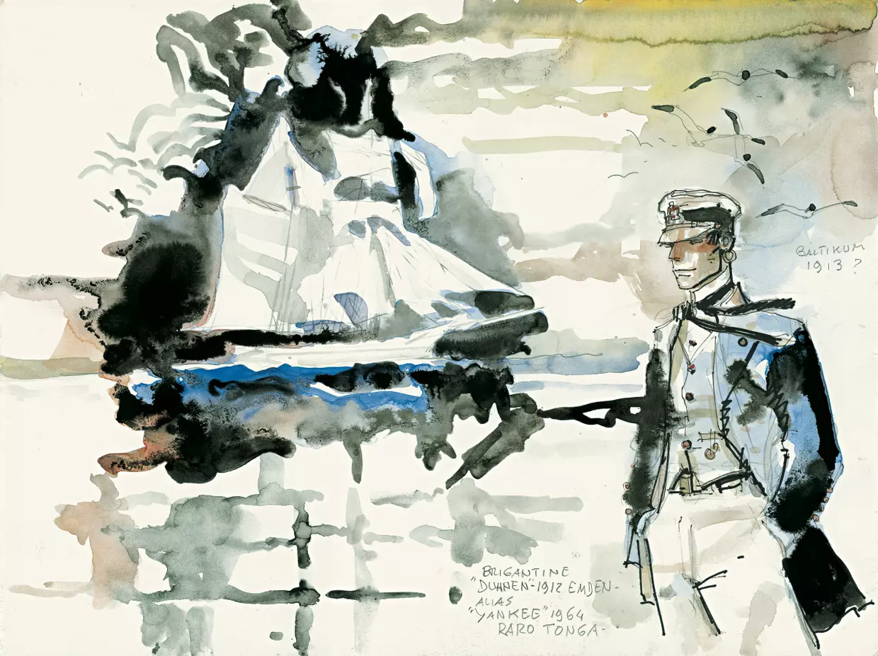 Né à Rimini, élevé en Éthiopie, Pratt est un marin et un voyageur dont l’expérience du monde s’est nourrie de lectures et d’histoire. Son style reflète cette vie d’aventures :